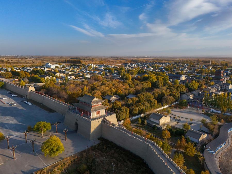 This aerial drone photo taken on Oct. 24, 2025 shows the scenery of the Xibe Ancient Town, a cultural heritage site showcasing the history of the Xibe people's westward migration and border defense.