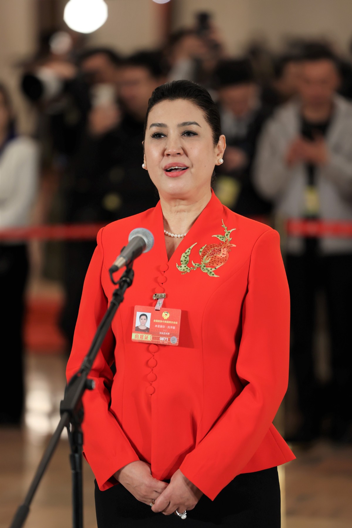 Muyasser Tohti, a member of the 14th National Committee of the Chinese People's Political Consultative Conference and president of Xinjiang Arts University, shared her personal experiences at the Great Hall of the People in Beijing. The fourth session of the 14th CPPCC National Committee opened on Wednesday afternoon.