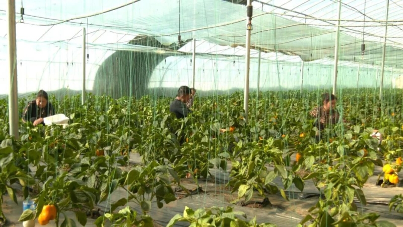 At the same time, 85 greenhouses at the Bachu County Modern Agriculture Industrial Park have also seen a good harvest. "Our colorful peppers have thick skins that resist damage during storage and transport. Also, thanks to Kashi's abundant sunlight and large temperature difference between day and night, the peppers have a sugar content one to two degrees higher. They are in high demand in the Russian market," said Wang Desheng, head of the enterprise. By the end of March, the park has exported 80 tons of colorful peppers and plans to export 500 tons for the whole year. This has provided jobs for more than 40 local people, each earning an average of 2,400 yuan more per month.